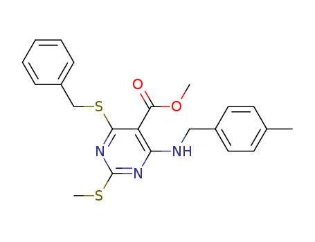 5-Pyrimidinecarboxylic acid, 4-(ethylamino)-2,6-bis[(phenylmethyl)thio]-,