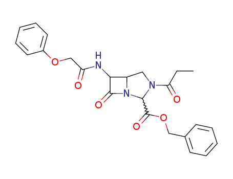 7-oxo-3-(1-oxopropyl)-6-[(phenoxyacetyl)amino]-, phenylmethyl ester